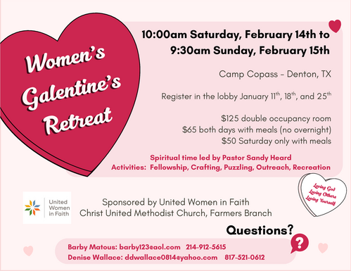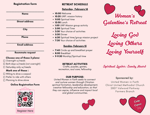 (Details for 2026 "Galentine's" Retreat at top of webpage)